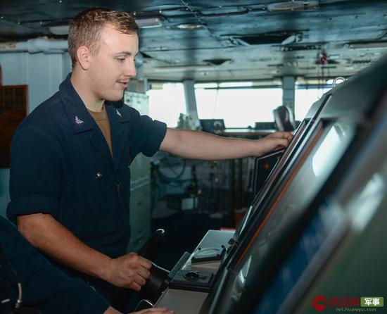 在阿拉伯海航行期间,杜鲁门号舵手操控航母。