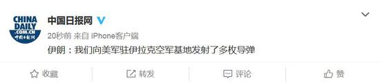 伊朗:我们向美军驻伊拉克空军基地发射了多枚导弹(中国日报网)