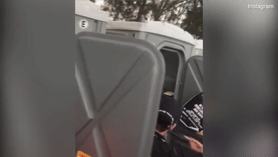 看到警察靠近,琼斯就跳到另一个流动厕所上,没想到却将流动厕所的顶部踩烂,整个身体掉进厕所,正好踩在一位入厕女子脱光的大腿上,吓得女子大声尖叫。看热闹的人全围过来了。