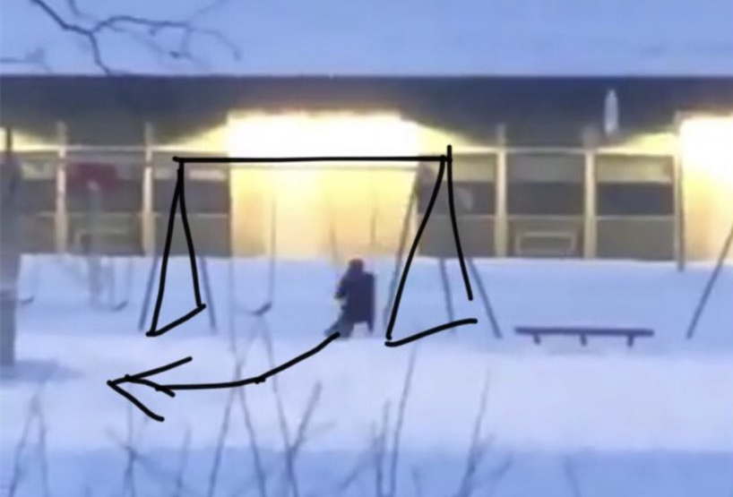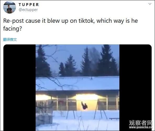 来自美国阿拉斯加的埃里克·塔珀(Eric Tupper),去年2月和一些朋友一起旅游时录了这段视频:虽然画质不清晰,但勉强能看出雪地中有一个人在荡秋千。