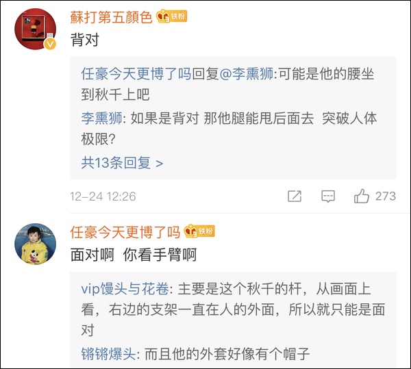 显然,国外网友们也无法做到意见统一,大家把头都挠秃了都判断不出,这人到底是朝哪个方向荡秋千的?