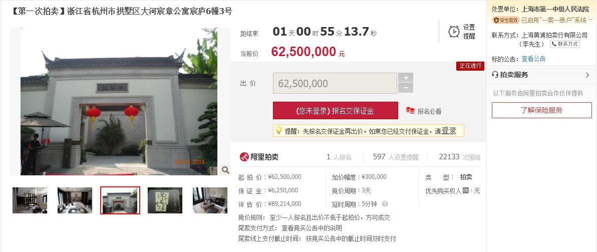 杭州又一豪宅被法拍:起价为估值7成2天无人出价