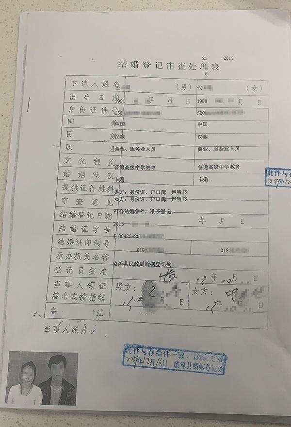 12月16日,代女士和丈夫飞赴邯郸,向临漳县民政局反映了情况,临漳县民政局证实有人用代女士身份信息登记结婚的事实,但表示没有权限对个人婚姻登记记录进行撤销。
