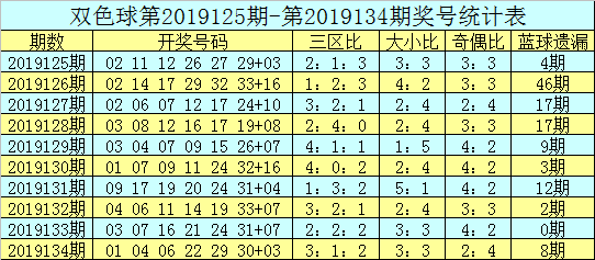 第19134期双色球开出奖号01、04、06、22、29、30+03。区间比:3:1:2,奇偶比:3:3。三区比:3:1:2,大小比:3:3,奇偶比,2:4。