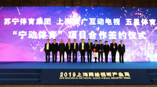 12月12日,苏宁体育集团、上海文广互动电视及五星体育在上海网络视听产业周上举办项目合作签约仪式,正式宣布成立合资公司——宁动体育。宁动体育未来将通过整合三方优质资源,拓展优质内容的出口,创新体育版权运营模式,让球迷有更多观赛场景。