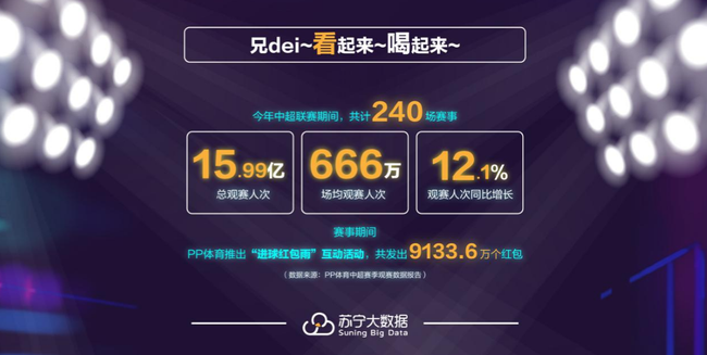 与过去赛事直播不同的是,PP体育在赛季开始前推出苏宁易购 PP体育中超联名会员,不仅会员打通体育与电商平台会员体系,会员能够免费观看240场中超赛事,参与中超联名会员日等线下活动,还让中超赛事真正全面覆盖球迷的生活场景。