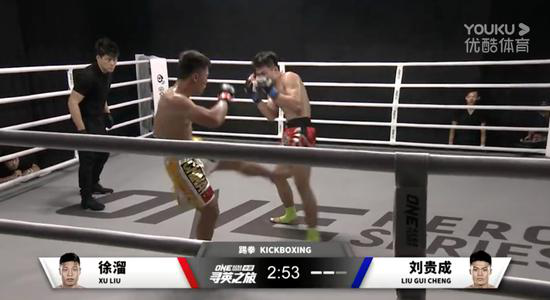 比赛当晚,20岁的刘贵成打法流畅犀利,出拳准确步步紧逼,徐溜凭借自己多年来的比赛经验才没被KO,最终在三回合结束后被刘贵成拿到点数胜利。