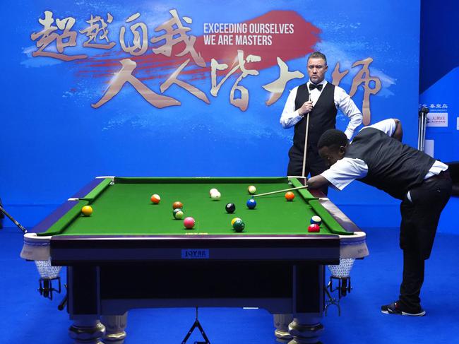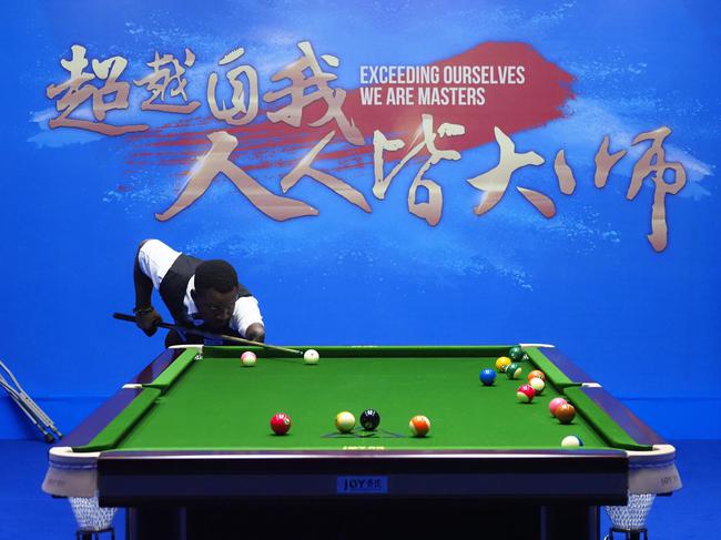 非洲独臂独腿小伙打中式台球 亨德利出席义赛