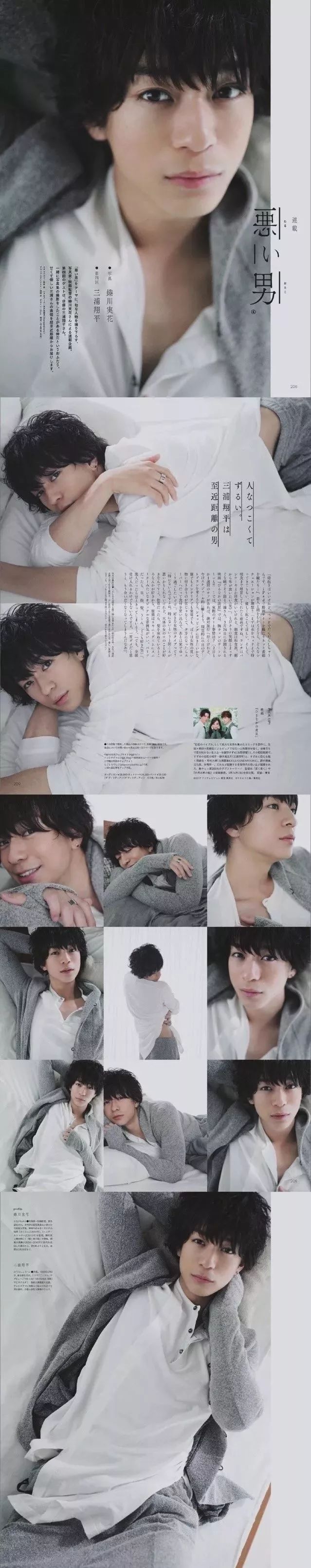 这一系列的写真都意在突出镜头下男明星们色气的一面,某种意义上来说比《anan》扒光男明星更刺激,毕竟有一种美叫“犹抱琵琶半遮面”嘛!