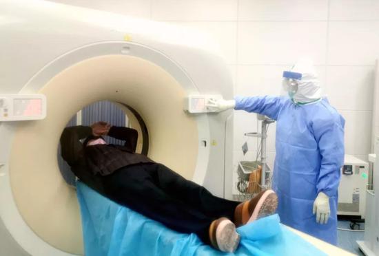 在CT室,王艳清每天都要接触一百多名患者,为他们摆位拍片,感染风险很大。作为队伍里的老大哥,他经常向年轻同志提醒注意事项,传授防护经验,亲自动手为他们整理防护装备。