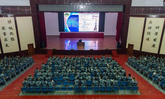 王晓坤作为全军专家组成员为基层官兵讲授疾病防控知识。