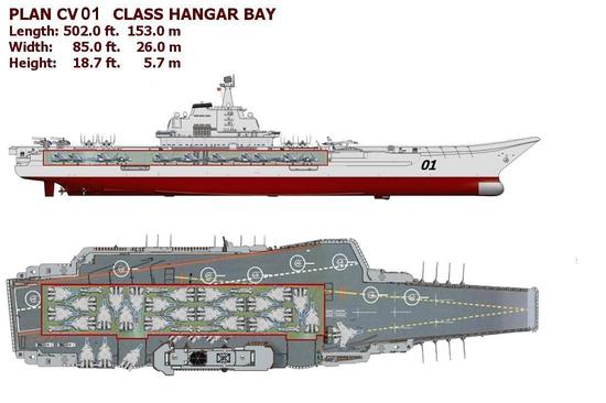 外媒推测的辽宁舰机库,可见22架歼-15已经是极限了