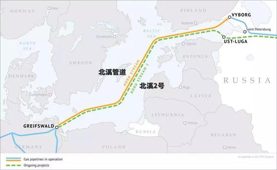 线路建成后,两条线路叠加,俄罗斯输入德国的天然气可望翻倍。2017年德国从俄罗斯进口了530亿立方米天然气,占其天然气消费总量的40%,“北溪2号”的设计能力是每年输送550亿立方米天然气。