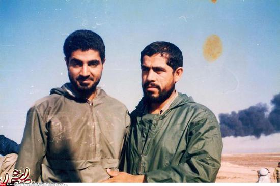 1982年,两伊战争期间的卡西姆·苏莱曼尼(左)。