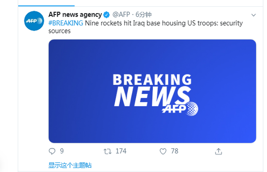 法新社称,这一袭击是伊拉克亲伊朗势力对美军杀死苏莱曼尼将军的“回应”。