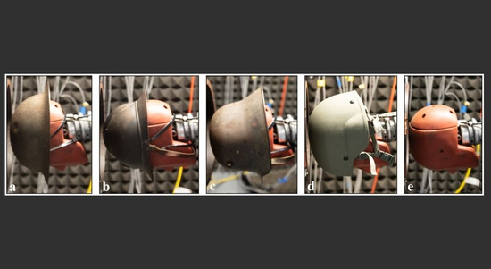 研究中对比了老型号的头盔和现役头盔,用无防护的假人头部作为参照,然后用模拟常见弹药的爆炸冲击波来轰击它们。