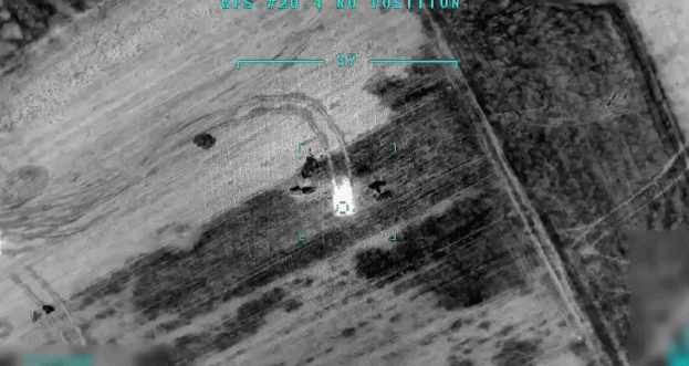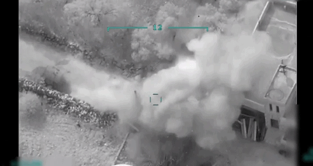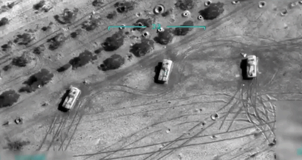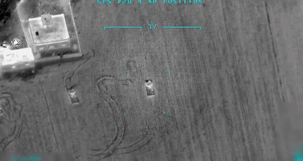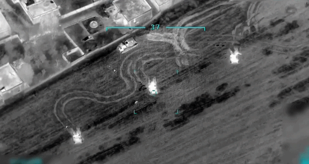 无人机拍摄的土耳其军队对叙利亚地面部队发动袭击的画面