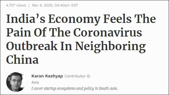 《福布斯》报道截图:中国疫情爆发,印度经济感受切肤之痛