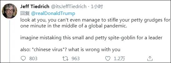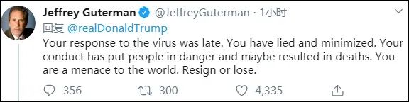 除了顾左右而言他,特朗普在推文中再次妄称“中国病毒”,试图转移针对白宫抗疫不力的指责,但随即受到众多外国网友的斥责。