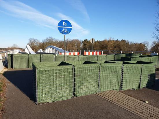 这是波兰军方在公路上筑起的一段多层路障,从德国驶来或本国驶出的车辆,想强行冲闯都不可能通过。