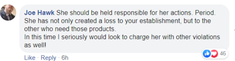 “她应该为自己的行为付出代价,不仅给商店造成损失,还使其他顾客造成不便!”网友表示。