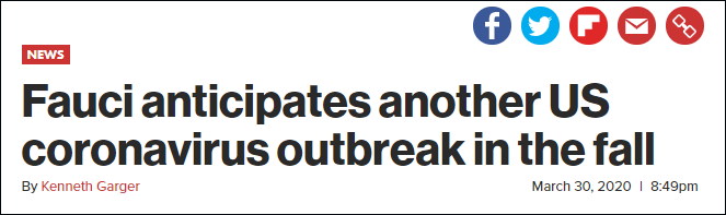 美传染病专家福奇:美国疫情或在今秋二次暴发