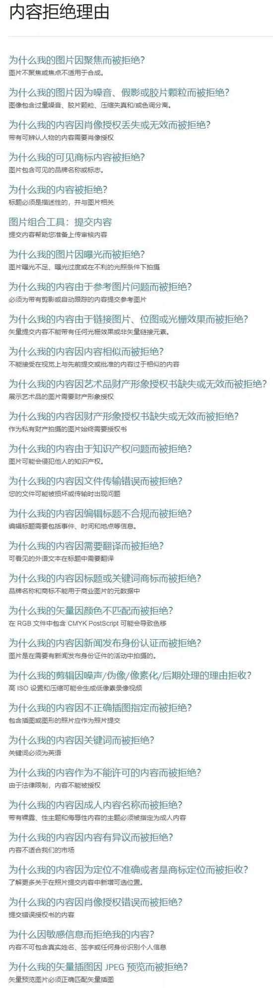 但实际上,照片可能被打回的种种原因,都写在一系列神秘的“客户支持文档”里面。只有当不知在地球上什么地方的审核员打回投递的时候,你才会知道违反了哪一条。