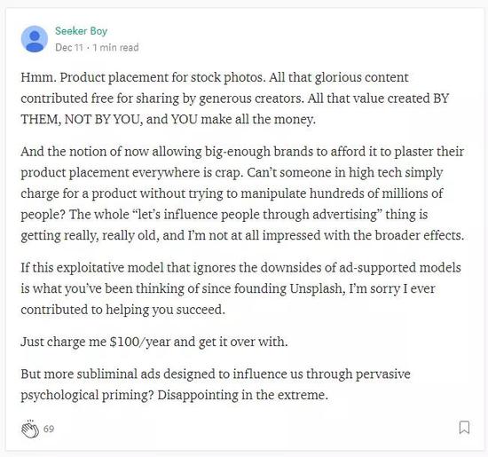 但根据 Unsplash 的使用条款,所有投稿人都已经默认了自己的心血一分钱回报都没有。可能只是现在,这一点被如此明晃晃的体现出来。还是让人难免心里不舒服。