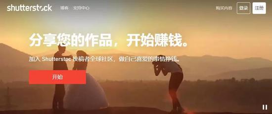 我首先想到的是Shutterstock。在它们的全球投稿网站上,“自 2003 年来已向投稿者支付逾 5 亿美元稿费”的字眼很是醒目。