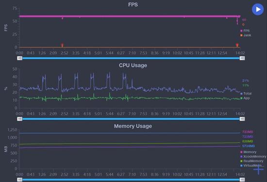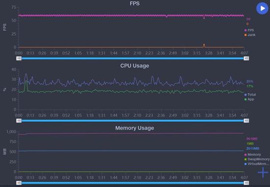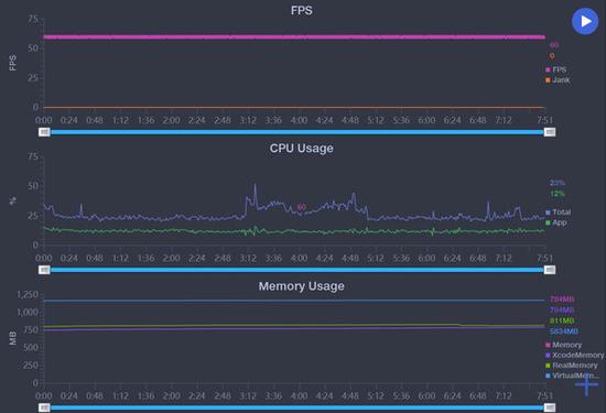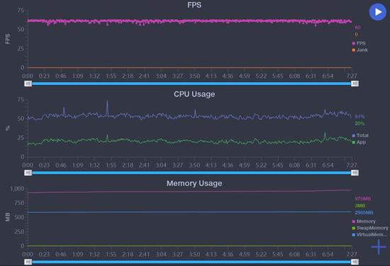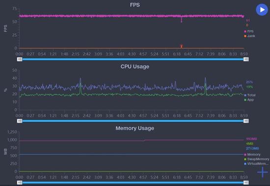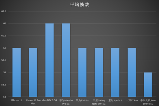 在PerfDog游戏帧数测试中,9款旗舰真实性能表现则十分接近。在高帧率、超高分辨率模式下的前提下运行《王者荣耀》,华为Mate30 Pro 5G平均帧率达到了惊艳的61帧,其余手机平均游戏帧数均达到了60帧左右。值得注意的是,两款iPhone的平均游戏帧数不仅达到了60帧,而且帧数曲线表现得最为平滑。不过iPhone 11无法开启超高分辨率,最高只能开启高分辨率。