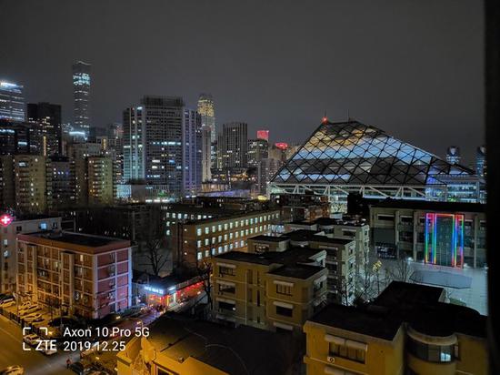 iPhone 11和iPhone 11 Pro Max依托夜景模式,夜间成像相比过去有着很大的进步,同时画面没有出现明显的噪点,尤其是样张的天空部分,十分纯净,不过整体亮度稍低;华为Mate30 Pro 5G和华为P30 Pro依托于4000万像素的IMX600 RYYB CMOS和自身的软件优化,画面整体亮度是所有横评旗舰中最亮的,同时还很好地保证了画面中的细节;三星Galaxy Note10+ 5G、vivo NEX 3 5G夜景成像风格相近,但都保证了画面的清晰度;一加7T Pro夜景观感不错,色彩表现力强;索尼Xperia 1亮度偏低,部分细节丢失较多,整体观感一般;中兴天机Axon10 Pro 5G夜景画面的亮度得到了一定的保证。