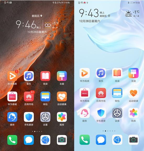 华为Mate30 Pro 5G和华为P30 Pro均搭载了EMUI,但是前者为最新的EMUI10,后者为EMUI9.1(P30 Pro目前已可升级EMUI10),但是两者在UI风格以及功能性上的差别还是很大的。