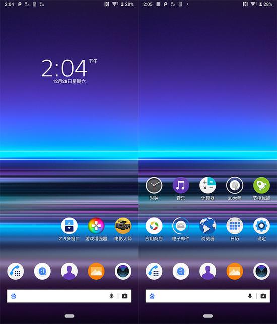 索尼Xperia 1搭载了基于Android 9的Xperia系统,这款系统UI风格相比于其他几款旗舰更加简约,还带点拟物化风格,同时保留了二级桌面。