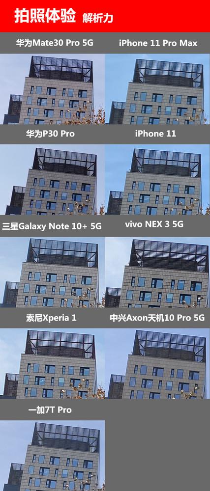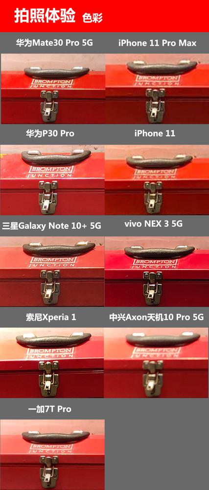 一加7T Pro、iPhone 11 Pro Max、华为P30 Pro、华为Mate30 Pro 5G、中兴Axon 10 Pro 5G、vivo NEX 3 5G、三星Galaxy Note10+ 5G、索尼Xperia 1、iPhone 11