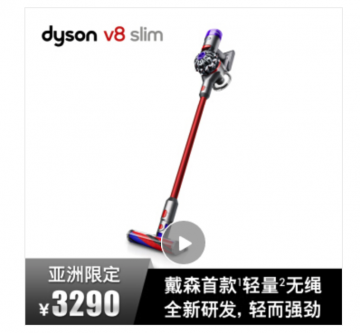 另外我还在 Dyson V8 Slim 商品页面上有一个很有意思的地方,上面写着‘亚洲限定’,也就是说这款设备其实瞄准的是亚洲市场,而并非欧美或者全球市场。