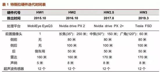 硬件方面,一共有三次升级,HW1.0到HW2.0主要通过增加传感器数量和深度学习功能使感知力大幅提升。HW2.0到HW3.0主要针对芯片进行了两次升级,基本实现了L5完全自动驾驶级别所需的计算能力。