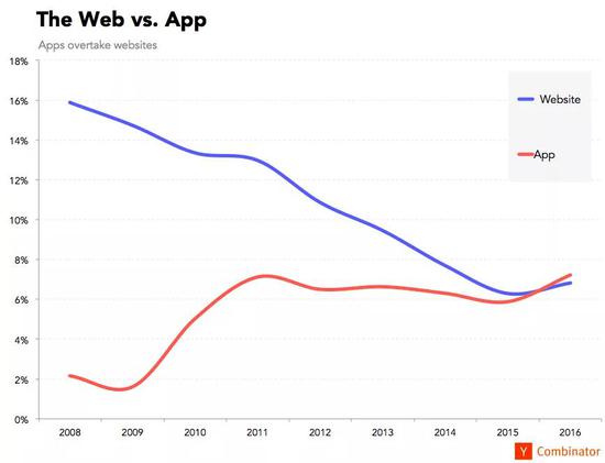 有一点值得注意,哪怕到了 2016 年,在这些申请 YC 的创业项目创始人来看,App 超越网站的趋势依然不明显。