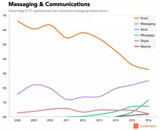 第五个问题,消息工具领域,申请 YC 的创业项目们,最像颠覆/依靠谁?