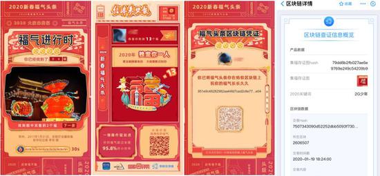 一天内,上亿个福字被在新春福气头条活动中被找到,不少用户选择将自己的福气头条存上蚂蚁区块链开放联盟链上。如果说2020年福字最多的地方,蚂蚁区块链可算一处了。