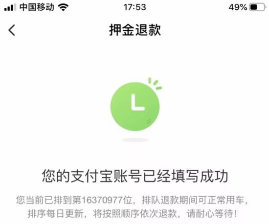 ofo屡次挑战用户心理底线,也正说明退还押金之艰难。截止发稿之时,ofo平台显示排队退押金人数1600余万,即便按照人均99元押金计算,这一数字也达到16亿元之巨。