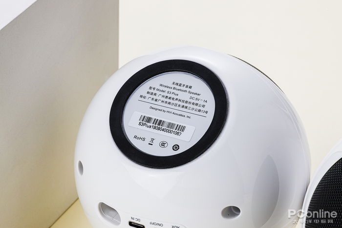 如果你第一次看到S3 Plus,并且是在比较远的位置看到,你一定会觉得它的设计很像一对大眼睛,特别是白色机身黑色网罩的配色,更有“大眼睛”的感觉。讲真,在音箱向来都是立方体/椭圆球体的设计中,S3 Plus这种采用类似球体的设计,的确会让让人有着一定的记忆感。