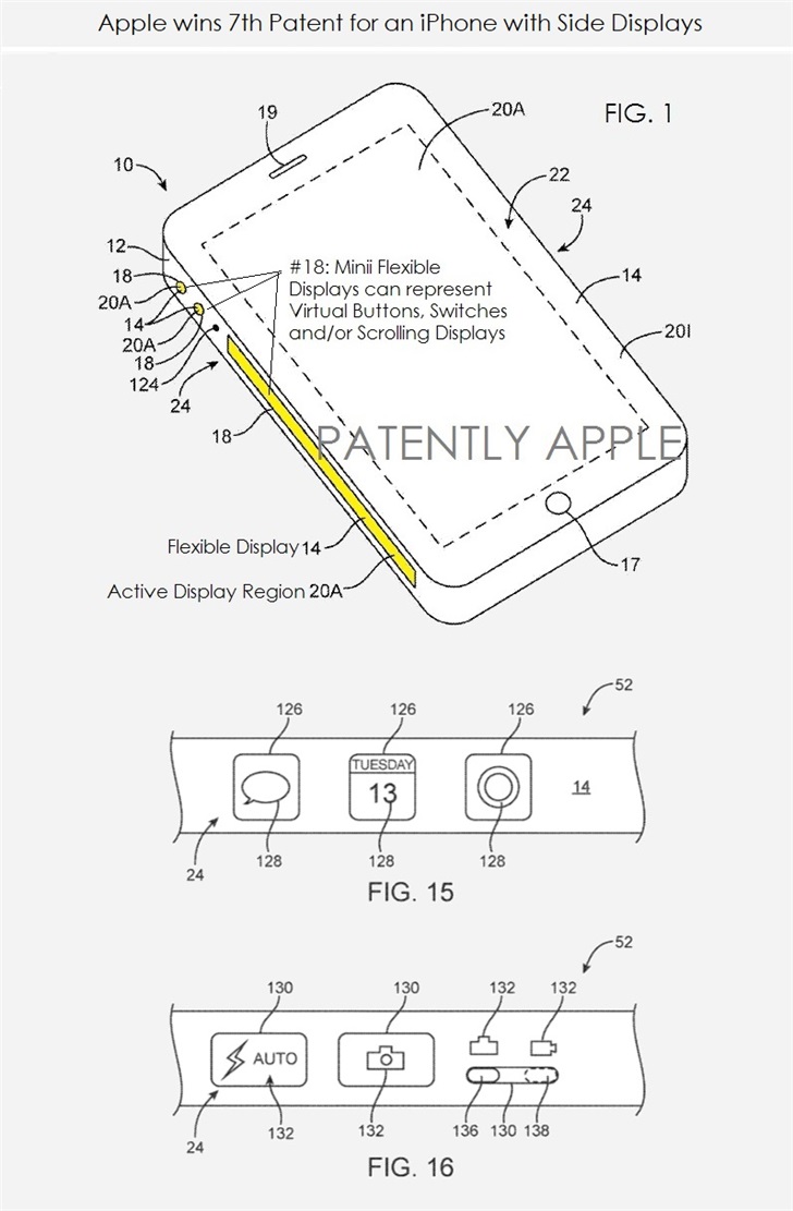 据patentlyapple报道,今天,美国专利商标局正式发布了苹果具有侧面触摸显示屏的iPhone专利,证明了苹果在研究侧面显示屏的技术。