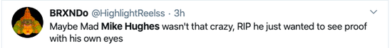 也有网友表示,或许迈克休斯并没有那么疯狂,他只是想亲眼看到证据而已。