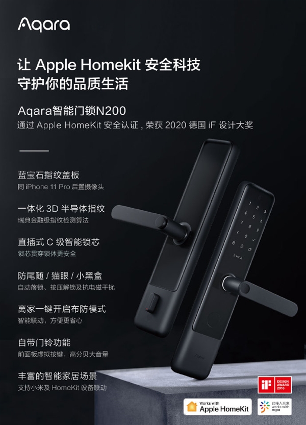 Aqara智能门锁N200发布:Apple安全认证 一步开门