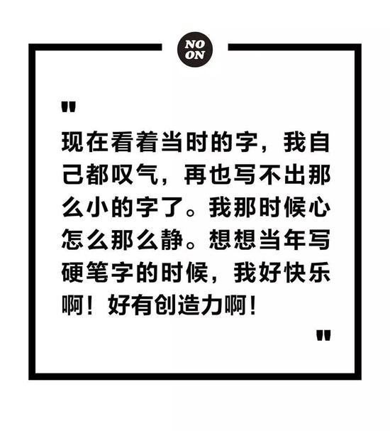 一开始我都不知道自己在微博上火了。出来了之后,好多人找我拍视频,我都不愿意拍。我以前拍了好多视频,他只弄了一分多钟上去,人家一看见就兴奋得不得了。这就是冰川现象,这只是我以前视频的冰山一角。想想当年写硬笔字的时候,我好快乐啊!好有创造力啊!