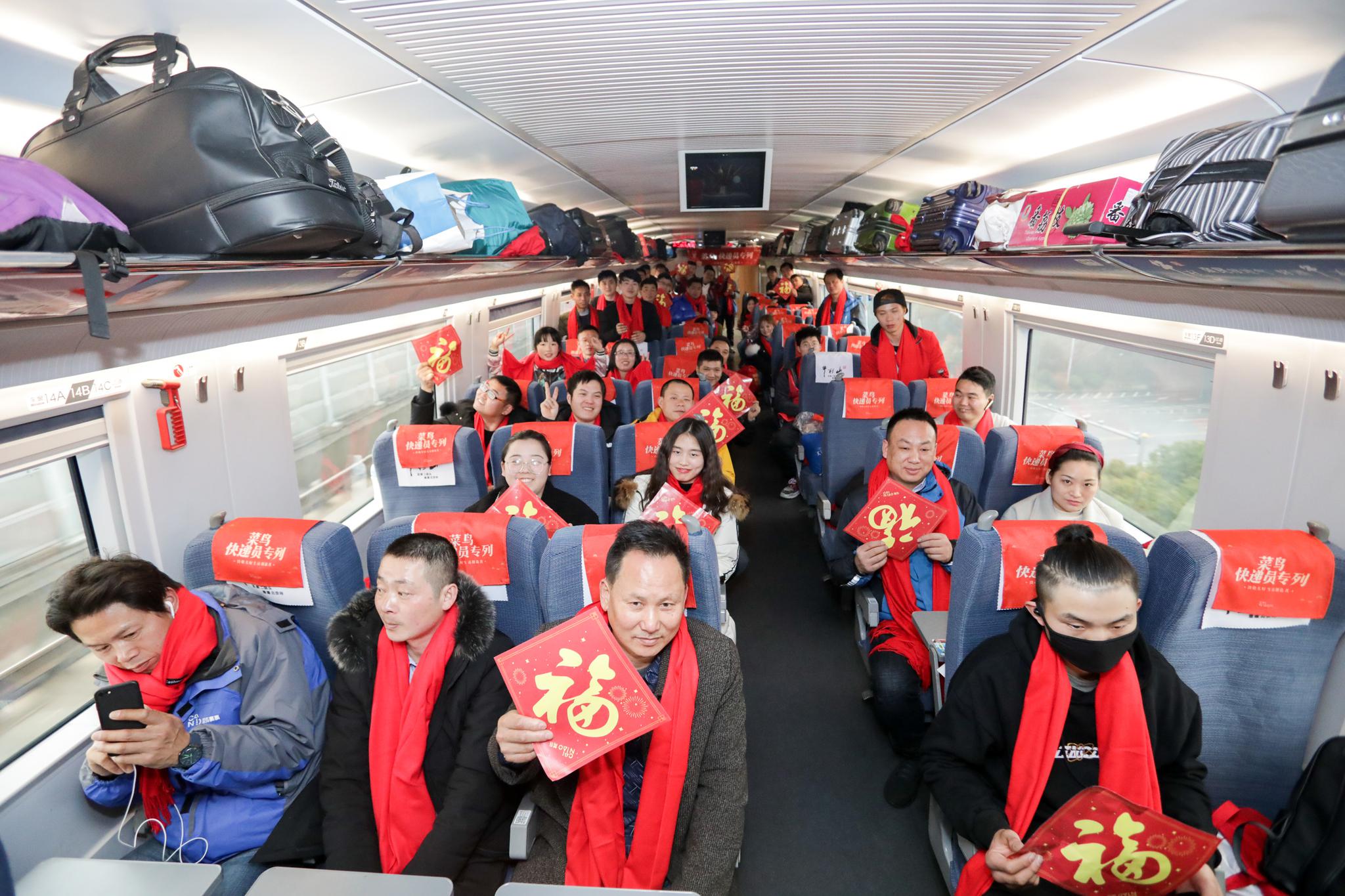 中国铁路上海局集团公司方面介绍,该局一直探索推行铁路订制化客运服务,让快递员等务工团体春运顺利返乡,是上海局义不容辞的责任。该局今年推出的务工团体包车返乡服务举措,也得到了务工人员及社会各界的广泛支持。