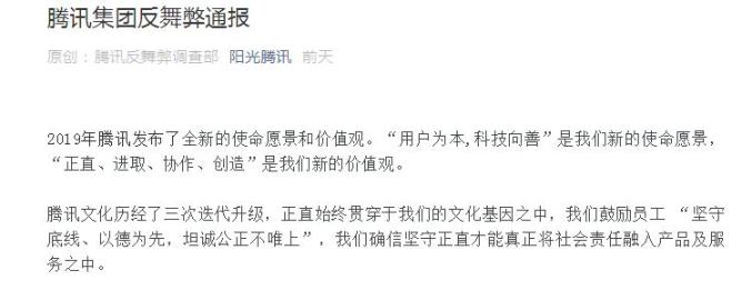 这是腾讯集团反舞弊调查部首次对外发布内部违规案件。