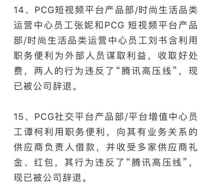 腾讯公布15起典型案例 涉事员工最高职务为总监