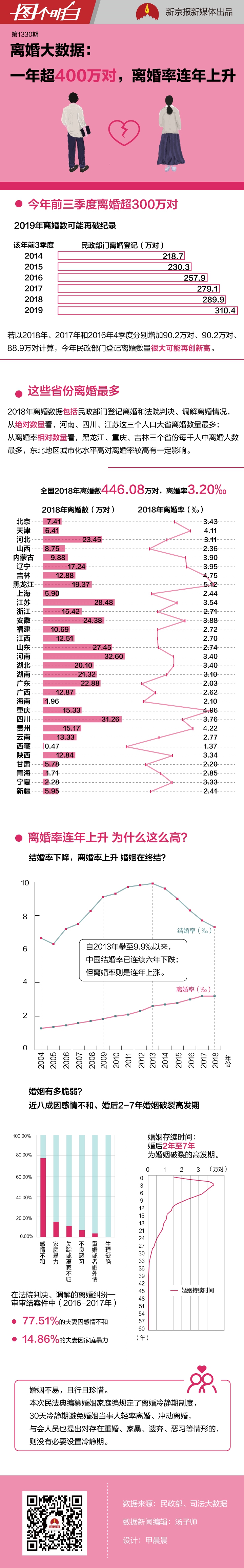 根据民政部统计数据显示,今年前三季度全国各级民政部门登记离婚达310.4万对,比去年同期多出20.5万对。