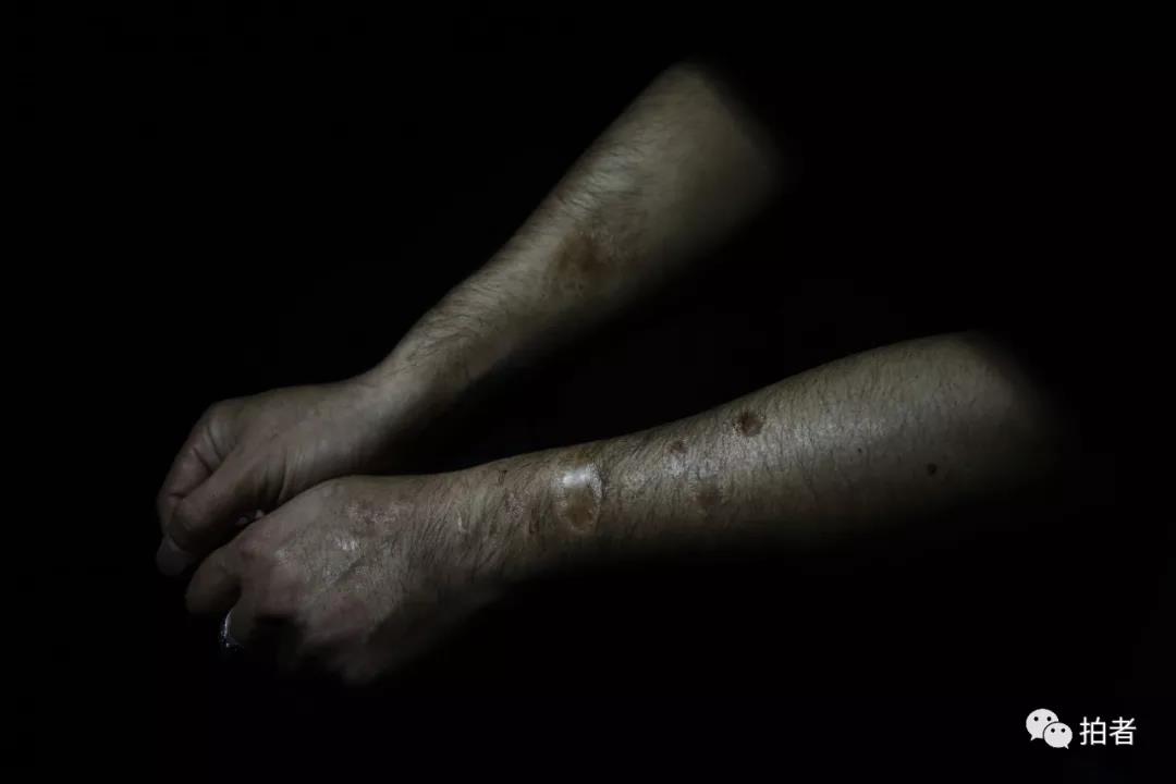 △ 2月27日,上海,王永福的手臂上有许多小时候被小偷组织烫的伤痕。